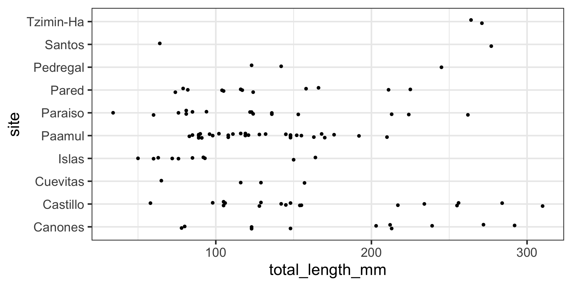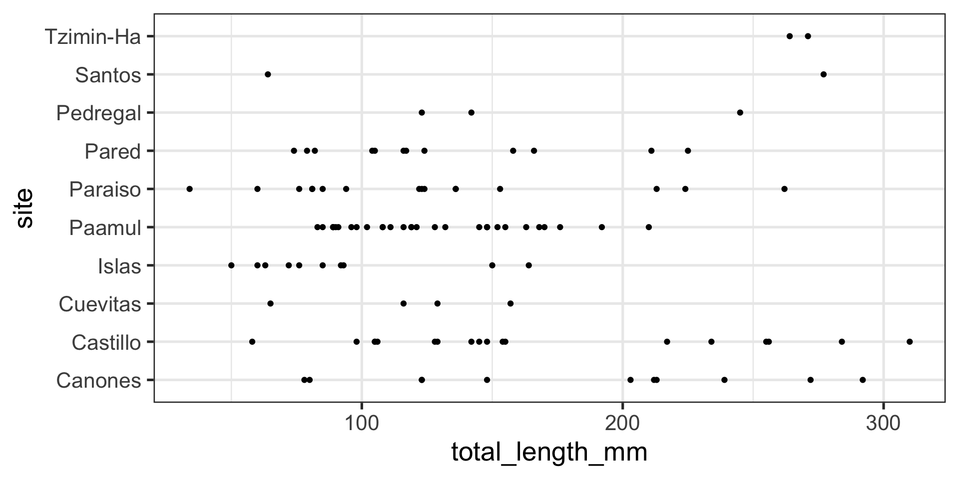 labs(x = "Total length (mm)",
