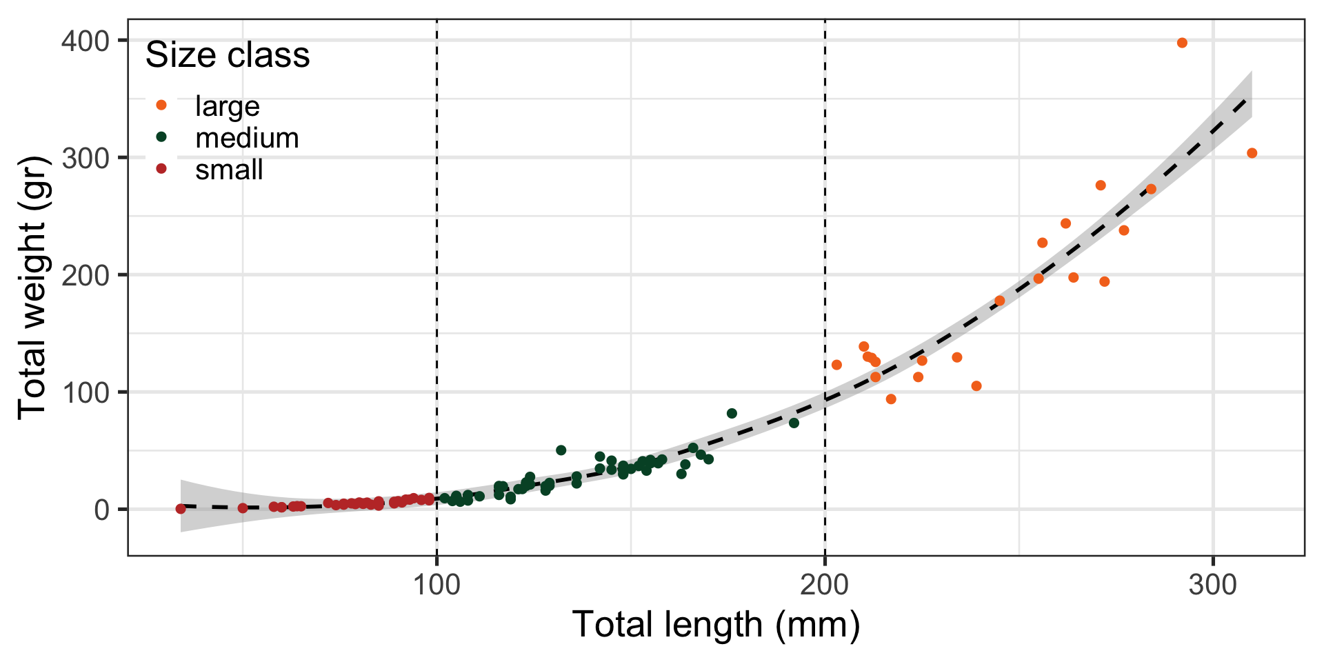 mapping = aes(x = total_length_mm, y = total_weight_gr)) +