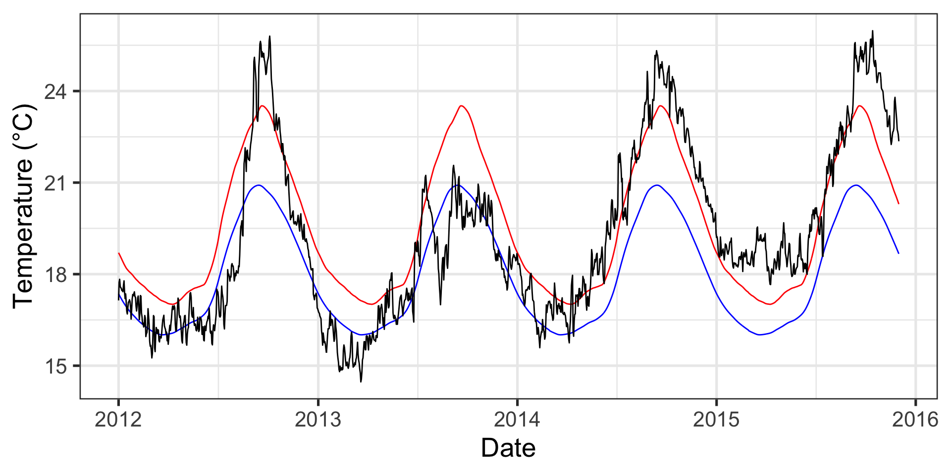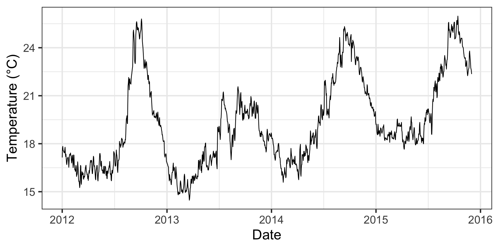 labs(x = "Date", y = "Temperature (°C)")