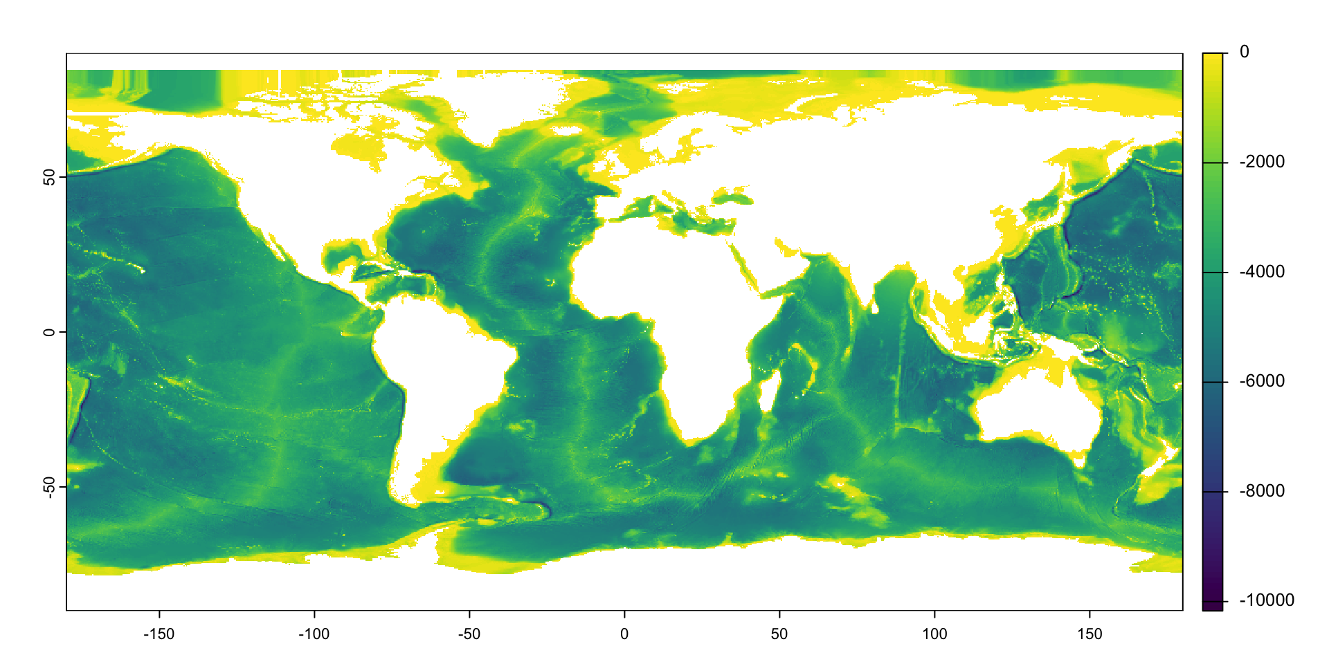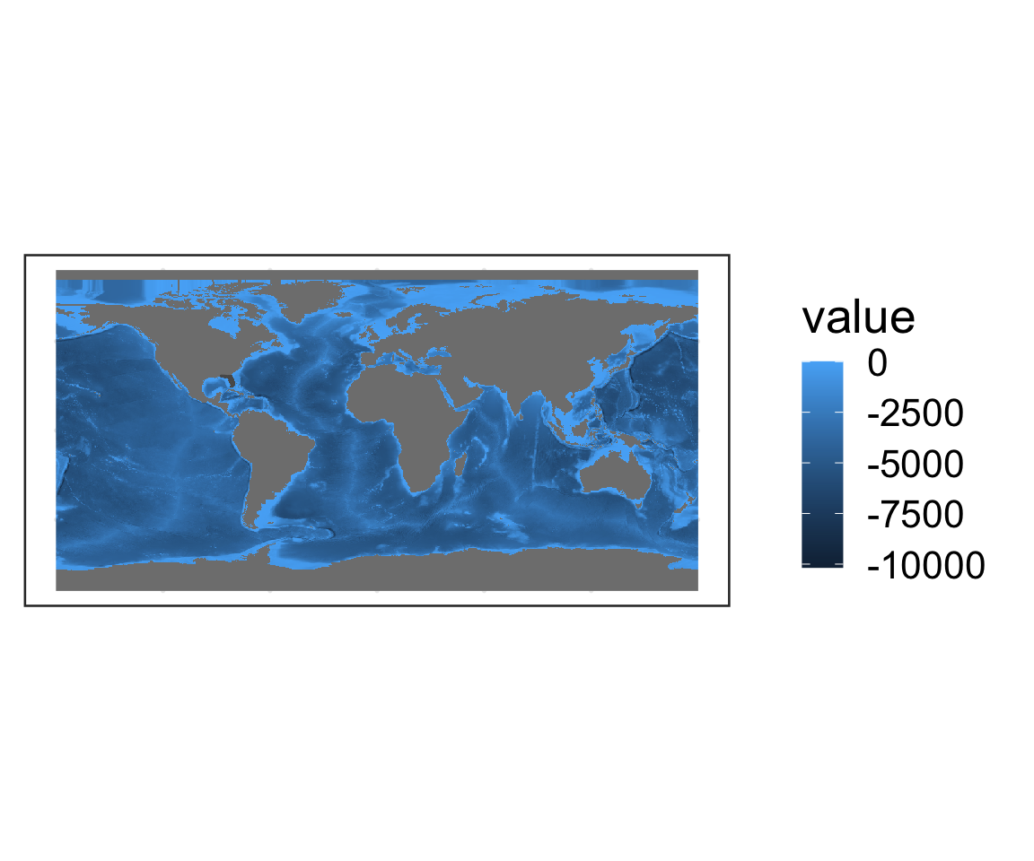 geom_spatraster(data = depth, # specify object to plot